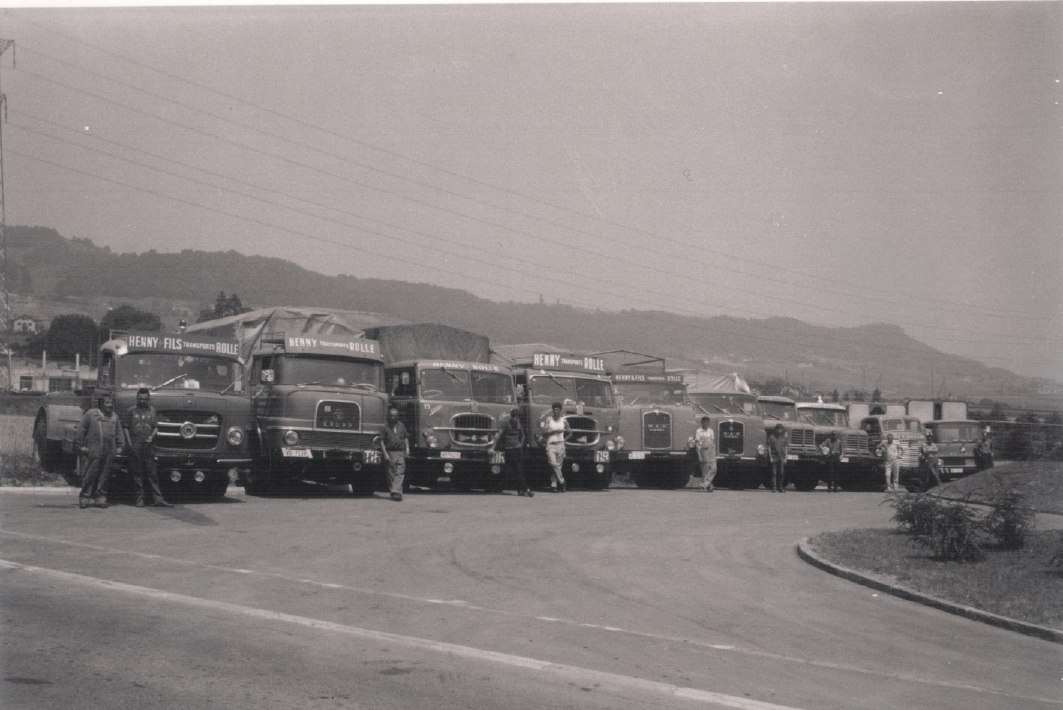 Les chauffeurs et les camions d'Henny Transports au début des années 1970.