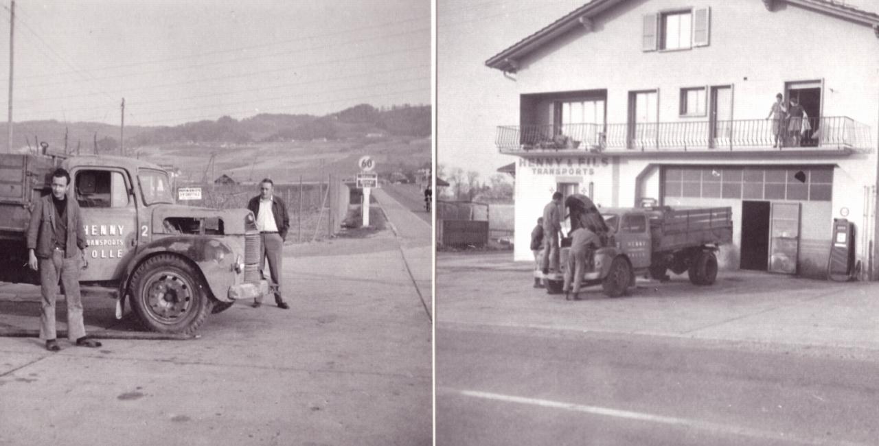 Michel Henny et Jean-Louis Debiton réparent un camion-benne devant l'entreprise, à Rolle.
