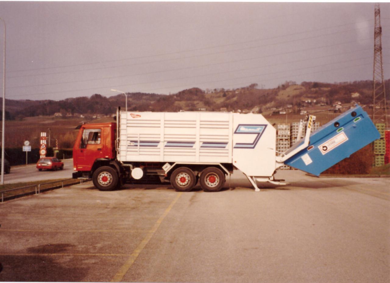 Levée d'une benne de verre usagé (début des années 1990)